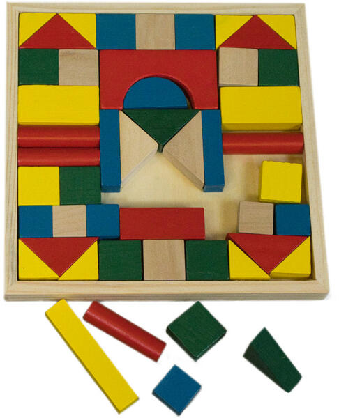 Fa építőkocka kit, 48 db, fa tartóban, 21x21 cm (FA3160)