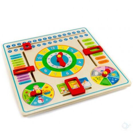 Minőségi oktatási eszköz, mellyel lehetőség adódik az évszakok, hónapok, napok, időjárás és az óra szemléletes tanulására illetve oktatására. A termék két csavarral falra szerelhető.