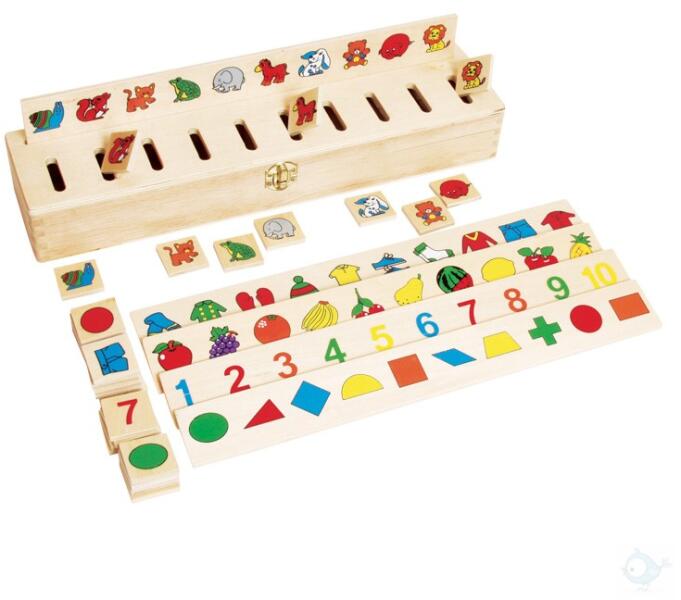 Segít a különböző témaköröket elválasztani egymástól. Megismerkedhetünk a számokkal, gyümölcsökkel, formákkal, állatokkal és ruhadarabokkal. A látott ábrákat kell pontosan a megfelelő résbe helyezni.