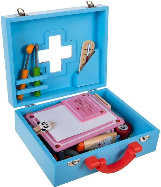Kruzzel 19869 Orvosi készlet fa kofferban, 43 db