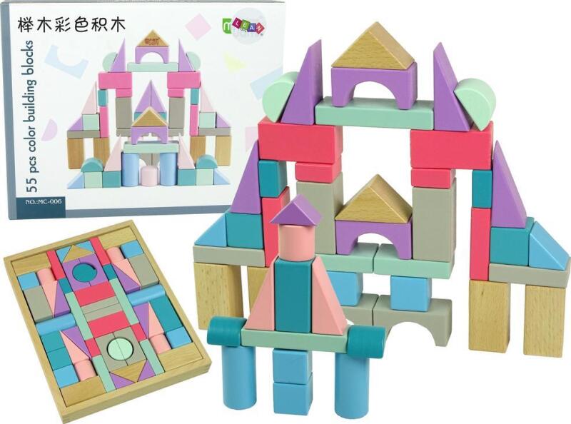 LEAN Toys Fa Téglák Pasztell Színek 55 db Kastély Épületek (10161) (10161)