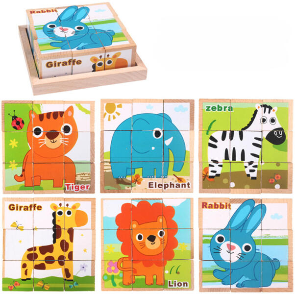 • 6 az 1-ben kirakós : minden egyes fakockának 6 oldala van, így egy készletből 6 különböző képet lehet kirakni – ez nemcsak izgalmas, de hosszú távon is leköti a figyelmet.