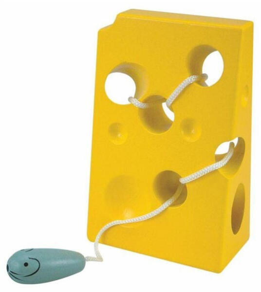 Vezesd át a kisegeret a sajt lyukain! Ám vigyázz, hogy egy lyukacskát se hagyj ki! Sajtfűzőcske fából készült kivitelben a Woody-tól!